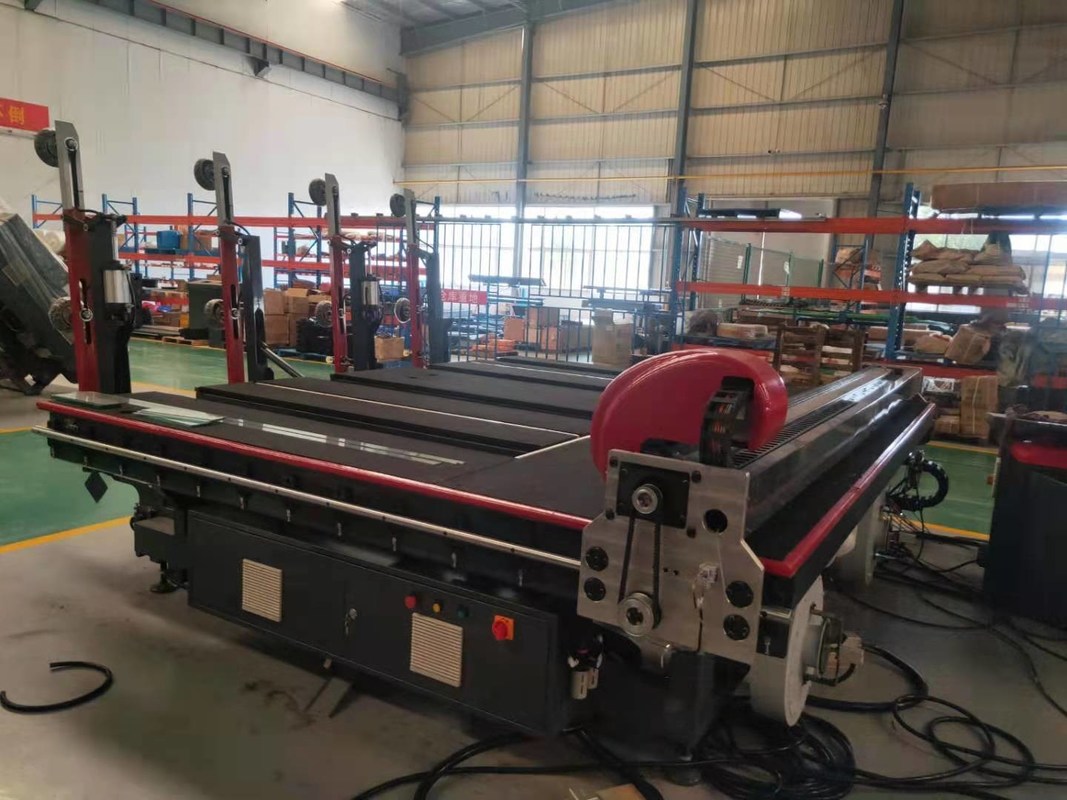 Mặt bằng tổng thể của dự án: Dây chuyền cắt kính tự động CNC gồm có bàn gia công tự động, bàn cắt tự động và bàn bẻ nổi trên không.Dây chuyền cắt kính tự động chủ yếu được sử dụng trong quá trình gia công kính phẳng, có thể tải các tấm một cách nhanh chóng và chính xác, cắt các tấm kính có hình dạng đặc biệt, đường thẳng và các tấm vỡ cơ học nổi trên không. doanh thu, thông qua cốc hút chân không lấy tấm kính từ giá, đưa xuống bàn xếp hàng.Kính được chuyển đến bàn cắt thông qua con lăn trên bàn tải và băng tải trên bàn cắt. Giá đỡ dao trên dầm cắt của máy cắt truyền động cho máy cắt chuyển động với tốc độ cao theo hướng X và hướng Y bằng động cơ servo.Sử dụng trục Z quay động cơ để điều khiển quỹ đạo tiếp tuyến của dụng cụ.Đồng thời, áp suất dao cắt và độ sâu của dao cắt được điều khiển bằng đại lượng tương tự, và bốn trục được vận hành đồng thời để cắt.Khi quá trình cắt kết thúc, tấm kính được đưa đến bàn phá vỡ nổi trong không khí để phá vỡ đệm khí được tạo thành bởi băng tải và bàn phá.
